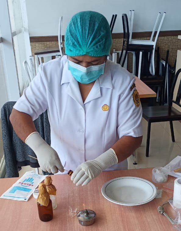 Sanitarian Tabita A. Timu, SKM melakukan pengambilan sampel makanan di Lorrita Resto