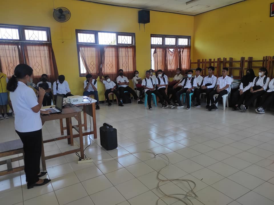 Penyuluh Afiani Kinle'e, S.KM sedang Memberikan Penyuluhan tentang Kesehatan Reproduksi pada Siswa/Siswi