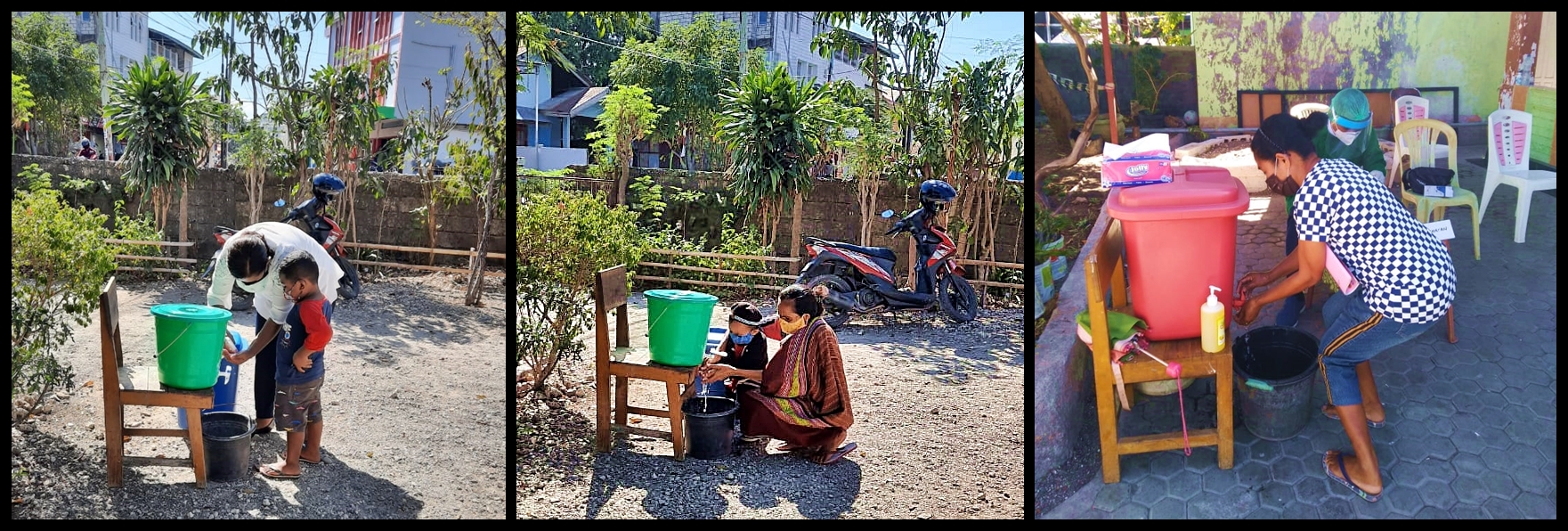 Salah satu kegiatan itu adalah pelayanan posyandu balita. Puskesmas Oebobo bersama kader posyandu kembali melakukan pelayanan dengan memperhatikan protokol pencegahan covid-19 seperti cuci tangan dengan sabun dan air mengalir/hand sanitizer, memakai masker, menerapkan physical distancing/jaga jarak, mengukur suhu tubuh pengunjung, mencegah kerumunan, melakukan skrining jika didapati ada gejala flu, demam, batuk pilek, diare/muntah dirujuk ke puskesmas. Sarung timbang dibawa oleh orang tua masing-masing bayi/balita.