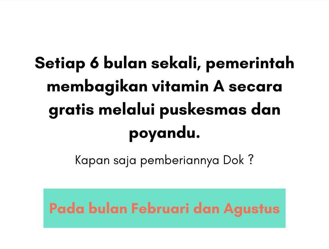 Tidak terasa kita sudah memasuki bulan agustus, bulan ini menandakan saatnya pemberian vitamin A.