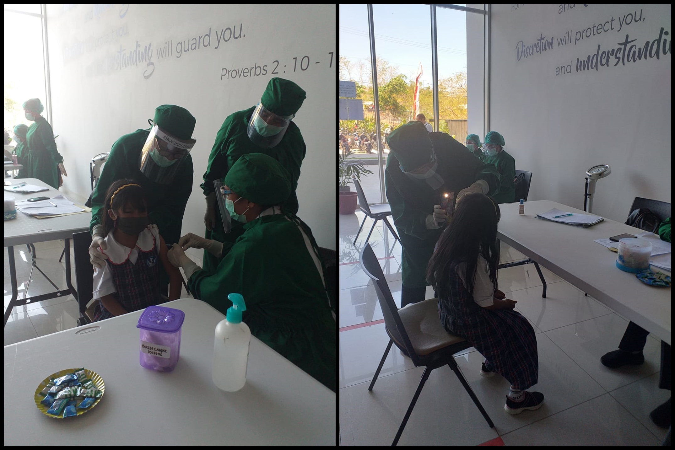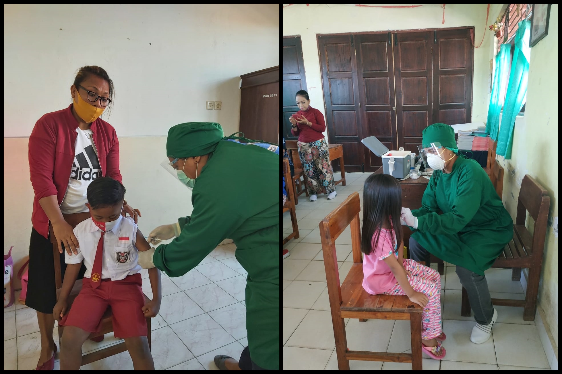 pada gambar tampak Bidan Maria Lada, Amd,Keb dan Bidan Maria A. ndolu Eoh, SST memberikan Imunisasi pada peserta didik