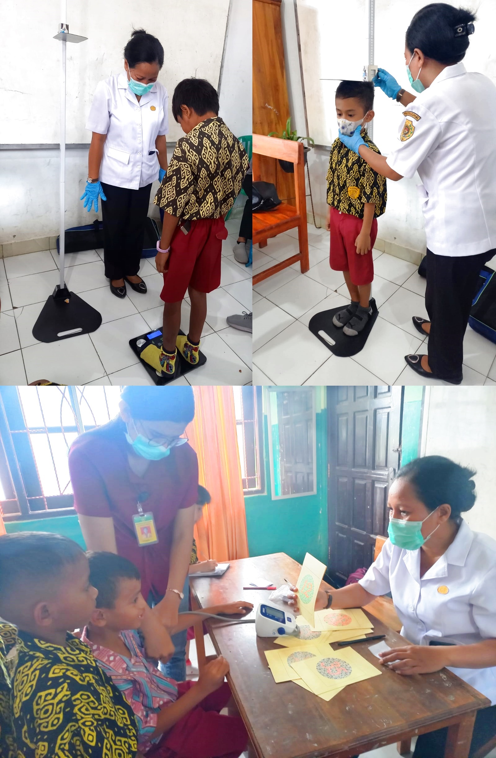 Kegiatan pemeriksaan kesehatan fisik dan penunjang dilaksanakan oleh tenaga kesehatan dari Puskesmas Oebobo yang terdiri dari Perawat, Perawat Gigi, Nutrisionis, Penyuluh Kesehatan Masyarakat dengan mendapatkan dukungan dari Kepala Sekolah dan guru UKS masing-masing sekolah.