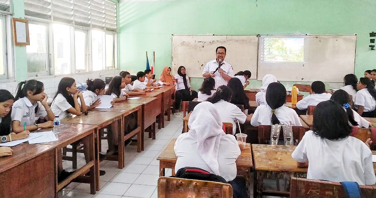 Penjaringan Peserta Didik di SMP Santi Karya oleh Petugas Kesehatan UPT Puskesmas Oebobo. Dari kiri ke kanan (Penanggung jawab Program Kesehatan Reproduksi, Laila Tjendrawasih, Amd. Keb; Penanggung jawab Program Kusta, Minche Ludji, Amd. Kep; Penanggung jawab Program Kesehatan Jiwa, Andarias Balalembang, S.Kep, Ns; Perawat Gigi, Dantje Damaledo, A.Md.Kg; Penyuluh, Afiani Kinle'e, SKM dan Penanggung Jawab Program UKS/UKGS Sri Herlin Ernawati, S.Kep.Ns